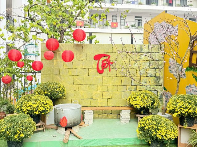 Không khí mùa xuân đang khẽ gõ cửa từng góc sân trường Mầm non Bình Minh,