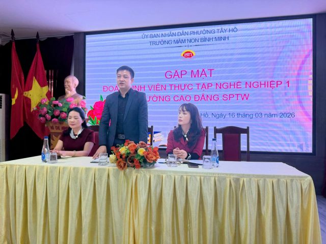 Hôm nay, ngày 16/3/2026, Trường Mầm non Bình Minh vui mừng chào đón đoàn sinh viên thực tập nghề nghiệp 1 của Trường Cao đẳng Sư phạm Trung ương đến thực tập tại nhà trường. Trưởng đoàn là Thạc sỹ Nguyễn Văn Dương , Phó giám đốc Trung tâm đào tạo Bồi dưỡng kiến thức, Giảng viên trường CĐSPTW.