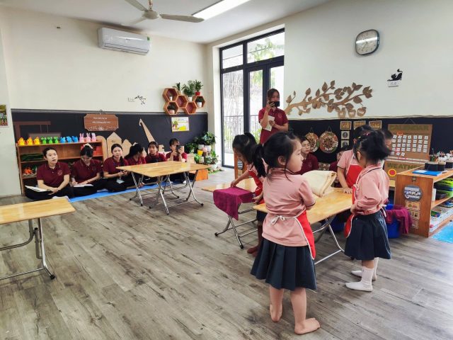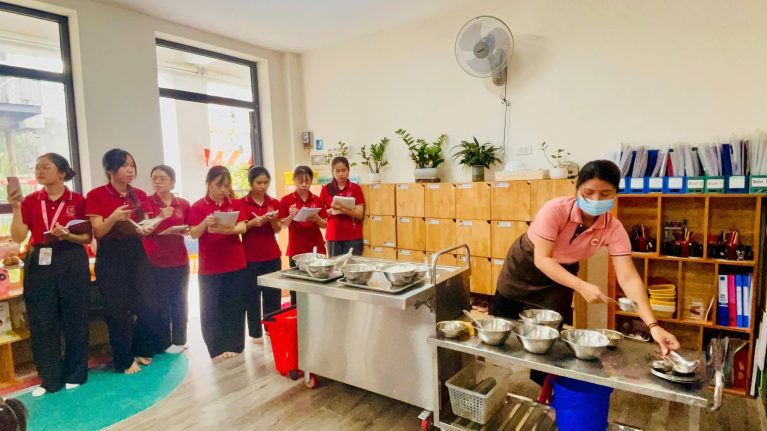 Ngay trong ngày đầu tiên, các em sinh viên đã được tham gia kiến tập lại chuyên đề: “Giáo dục dinh dưỡng kết hợp vận động nhằm phát triển thể chất cân đối cho trẻ em”. Đây là hoạt động chuyên môn giàu tính thực tiễn, giúp sinh viên hiểu rõ hơn về cách tổ chức các nội dung giáo dục tích hợp trong trường mầm non, đặc biệt là sự kết nối hài hòa giữa dinh dưỡng khoa học và vận động phù hợp nhằm hỗ trợ sự phát triển toàn diện cho trẻ