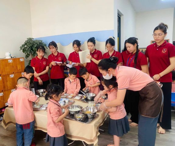 Qua đó, các em sinh viên có thêm cơ hội quan sát, học hỏi quy trình chăm sóc trẻ, cách xây dựng nề nếp trong giờ ăn và phát triển kỹ năng tổ chức hoạt động giáo dục gắn với đời sống hằng ngày của trẻ.
