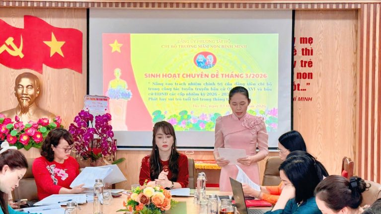 Thực hiện lịch sinh hoạt chính trị tháng 3, Chi bộ trường Mầm non Bình Minh đã tổ chức sinh hoạt thường kỳ kết hợp sinh hoạt chuyên đề với nội dung: